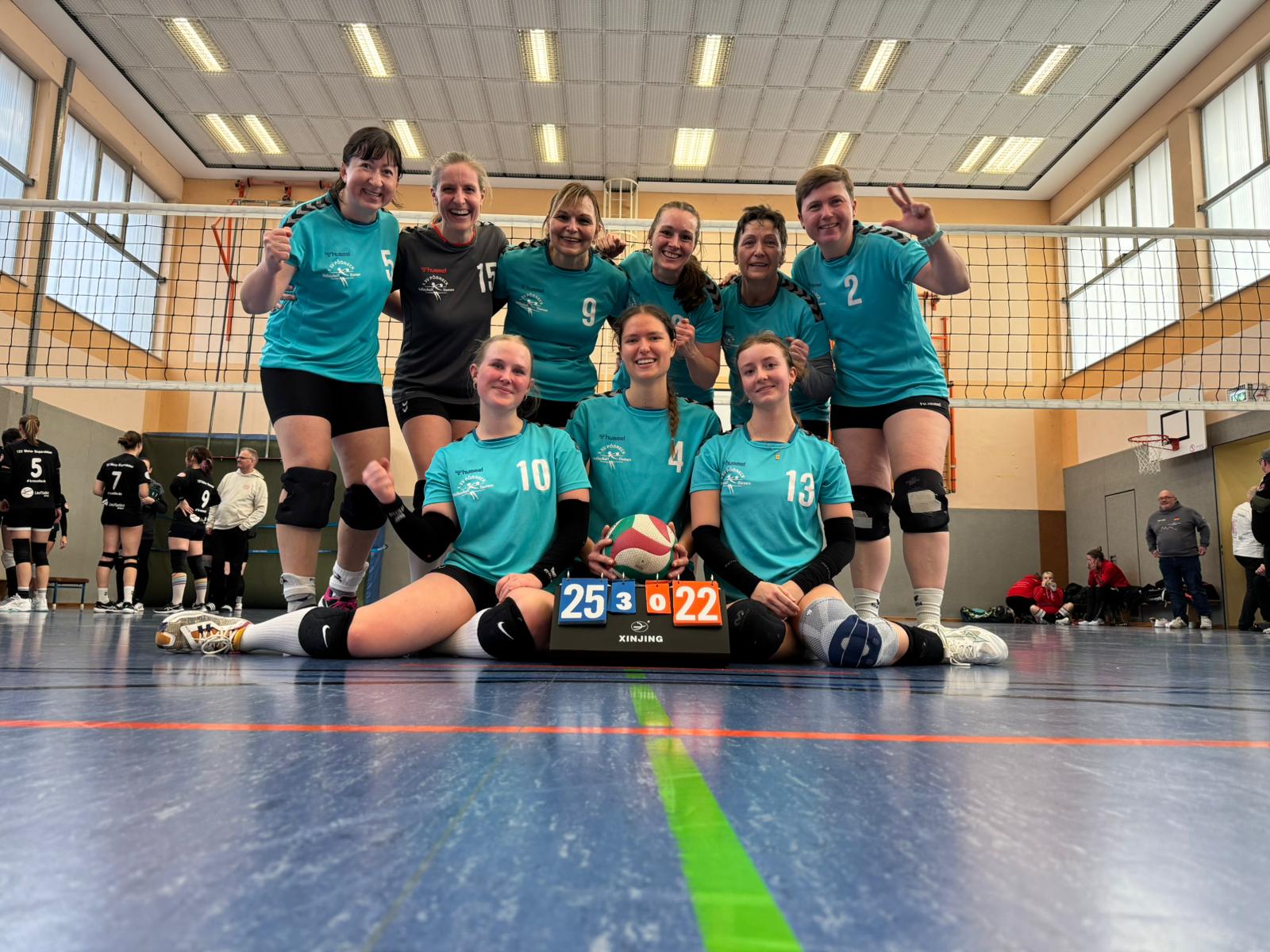 Nach einer kurzen Spielpause hieß es erneut Kräfte mobilisieren und gegen die 1. Damen vom VC Schloß Apolda sicher und souverän auftreten. Das gelang den Pößneckerinnen Damen nur bedingt gut, das Spiel erfolgte auf beiderseitiger Augenhöhe. Mit Fehlern die sich nach und nach einschlichen konnten die Damen aus Apolda den ersten Satz 25:19 für sich gewinnen.