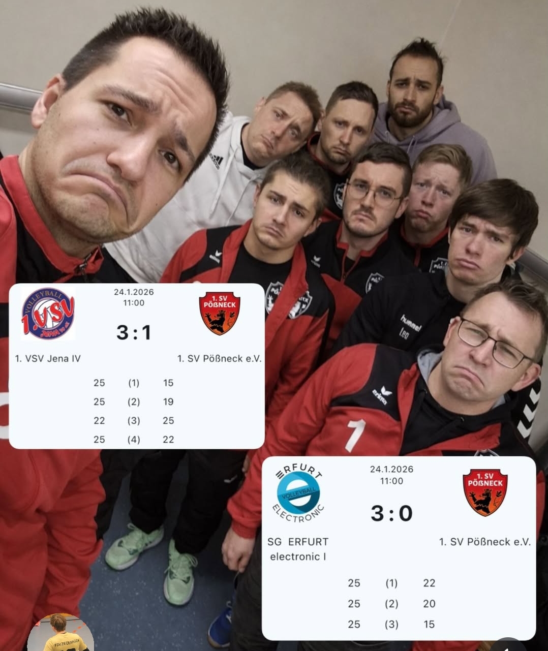 Im ersten Spiel mussten die Pößnecker gegen den 1. VSV Jena ran, die im Spiel zuvor den Tabellenführer Erfurt klar besiegten. Pößneck hielt ganz gut mit und man konnte sogar den dritten Satz gewinnen. Doch am Ende konnten leider keine Punkte mitgenommen werden.